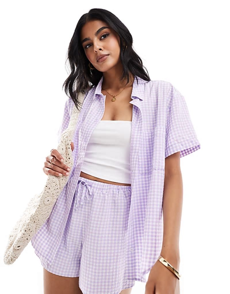 short sve resort shirt in lilac gingham co ord